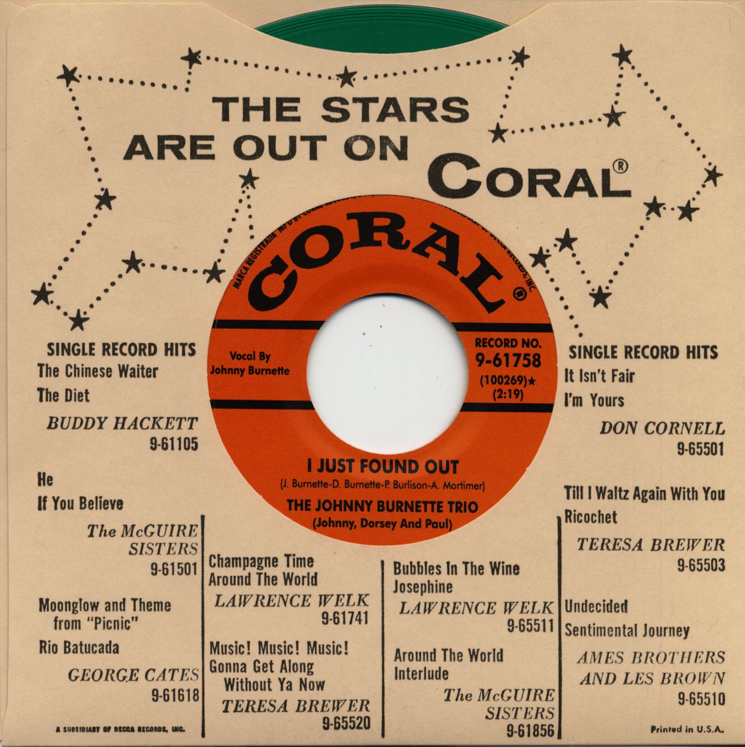Johnny Burnette Lonesome Train - I Just Found Out (7inch, 45rpm, colored Vinyl)
