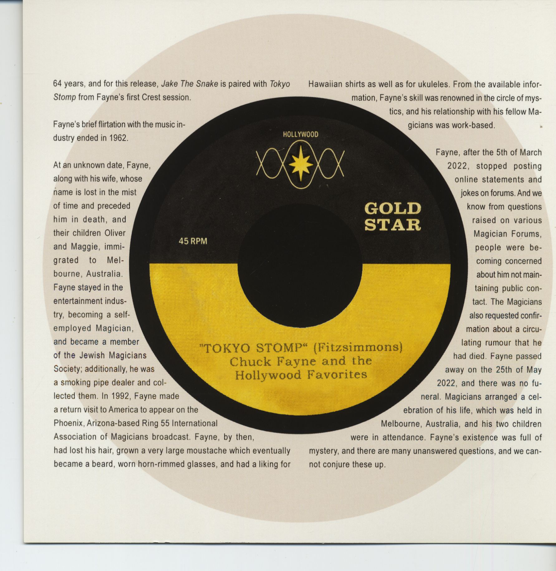Chuck Fayne and the Hollywood Favorites Jake The Snake - Tokio Stomp (7inch, 45rpm)