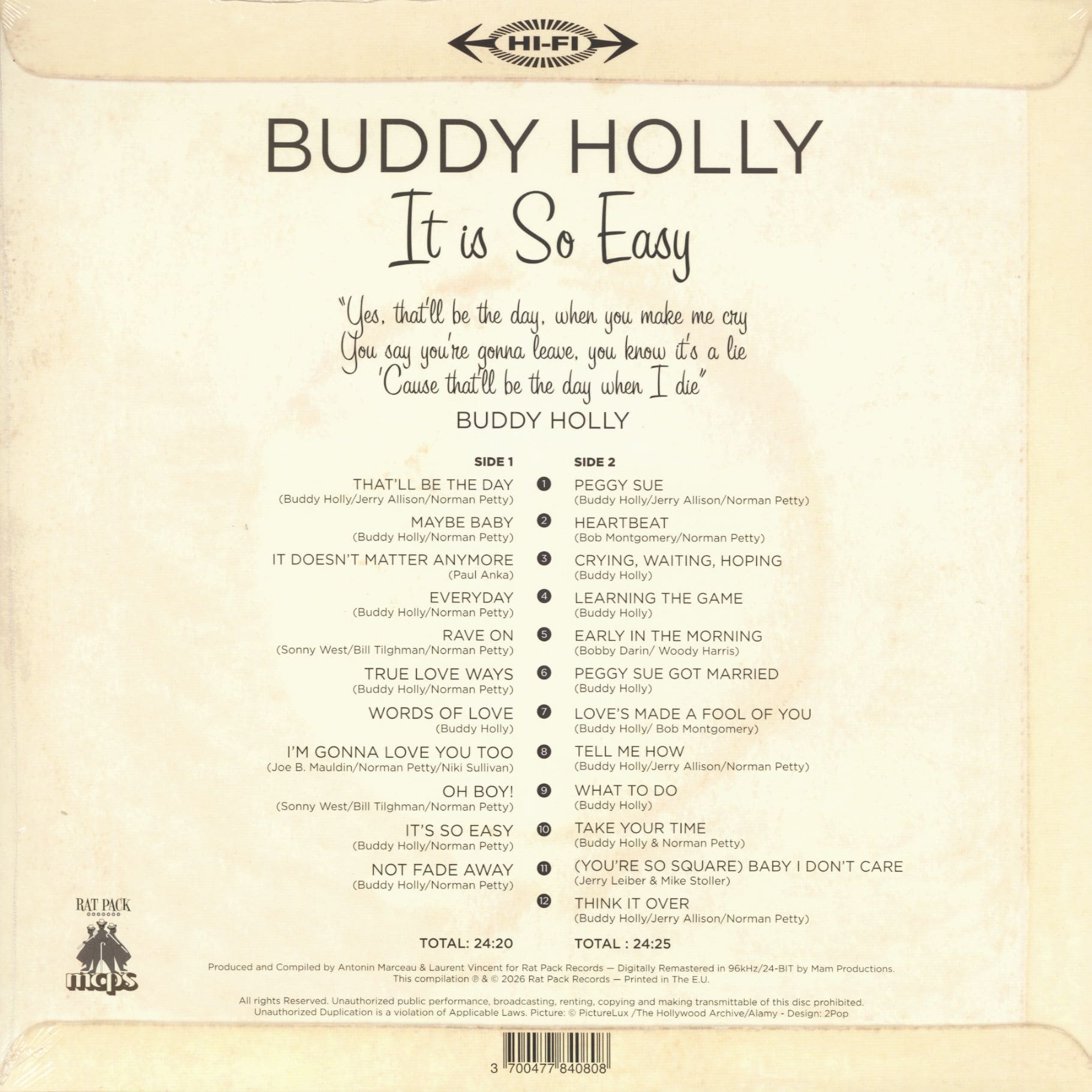 Buddy Holly It Is So Easy (LP, 180g Vinyl, Ltd. + CD)