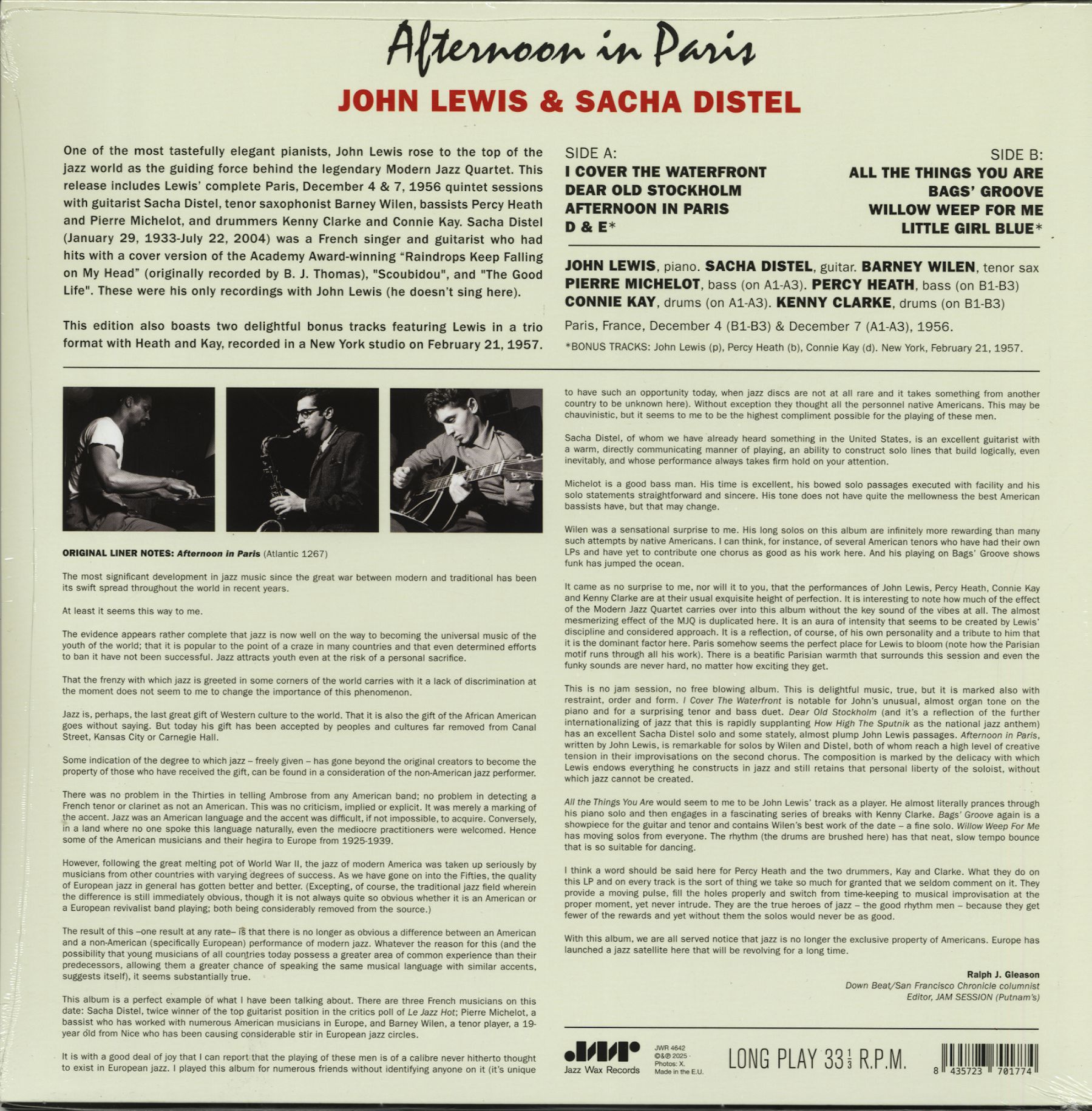 John Lewis & Sacha Distel Afternoon In Paris (LP, 180g colored Vinyl, Ltd.)