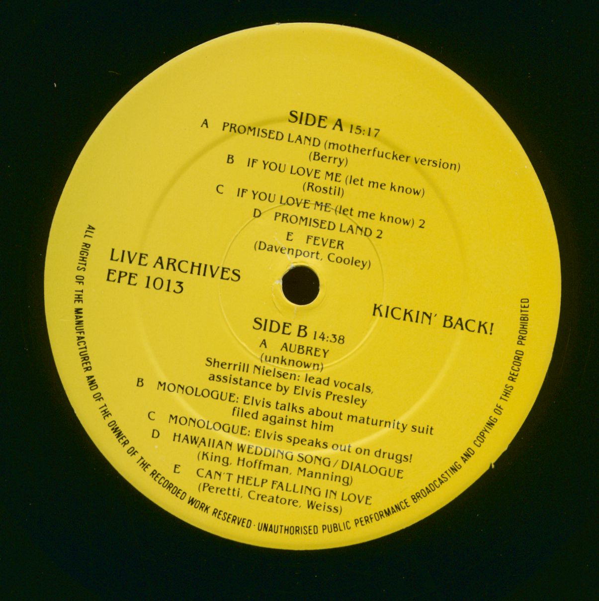 Elvis Presley Kickin' Back ! The 1974 Hilton Dress Rehearsal (LP)