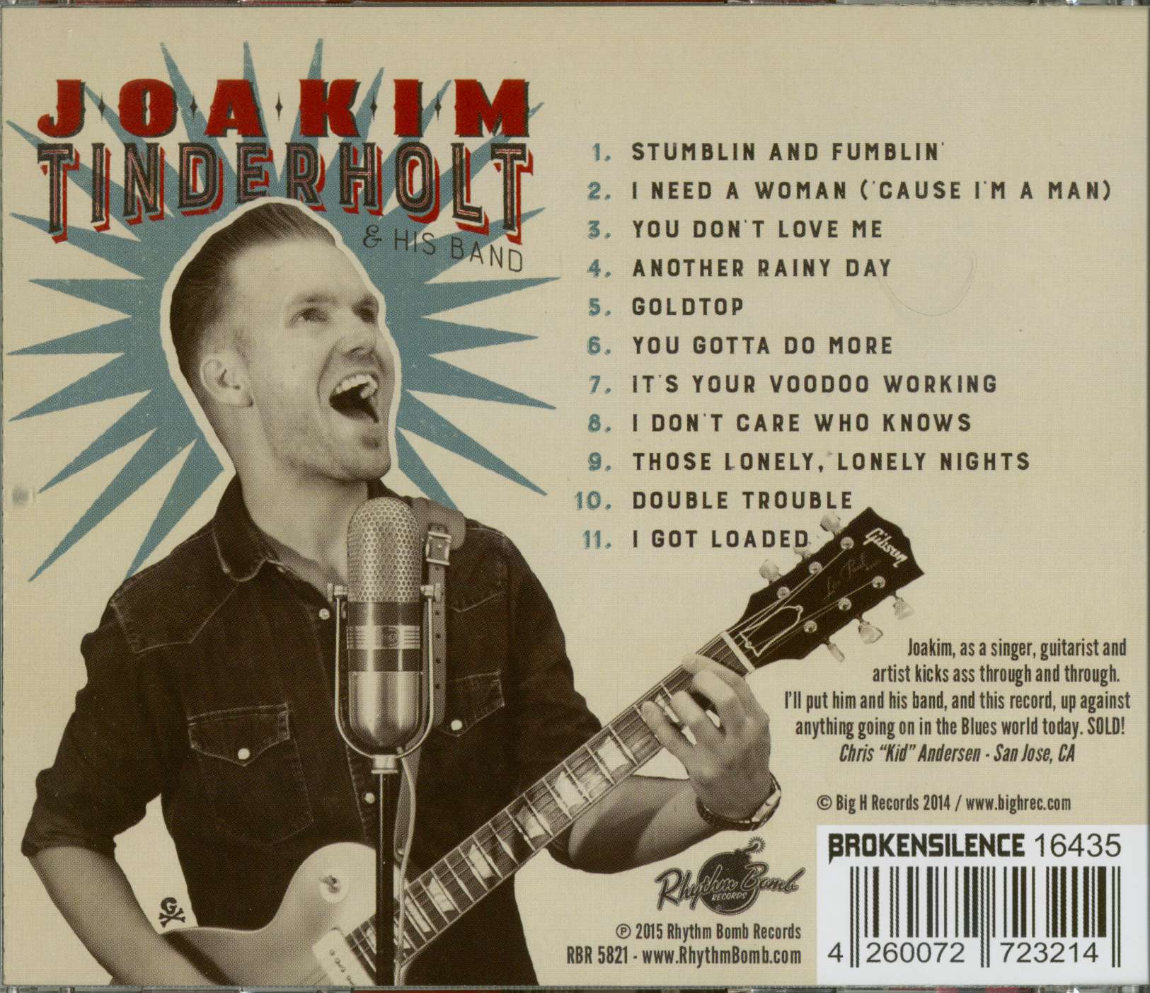 Joakim Tinderholt aus Norwegen wartet hier mit seinem Debutalbum auf! Killer Rhythm & Blues Scheibe mit sechs eigenen Stücken, die alle absolute Highlights sind! Richtig gut ist auch seine Version von Willie Cobbs' 'You Don't Love Me'. Das ganze Album macht richtig Spaß - eine Mischung aus 1950er West Coast Rhythm & Blues und etwas Soul! Sehr zu empfehlen!