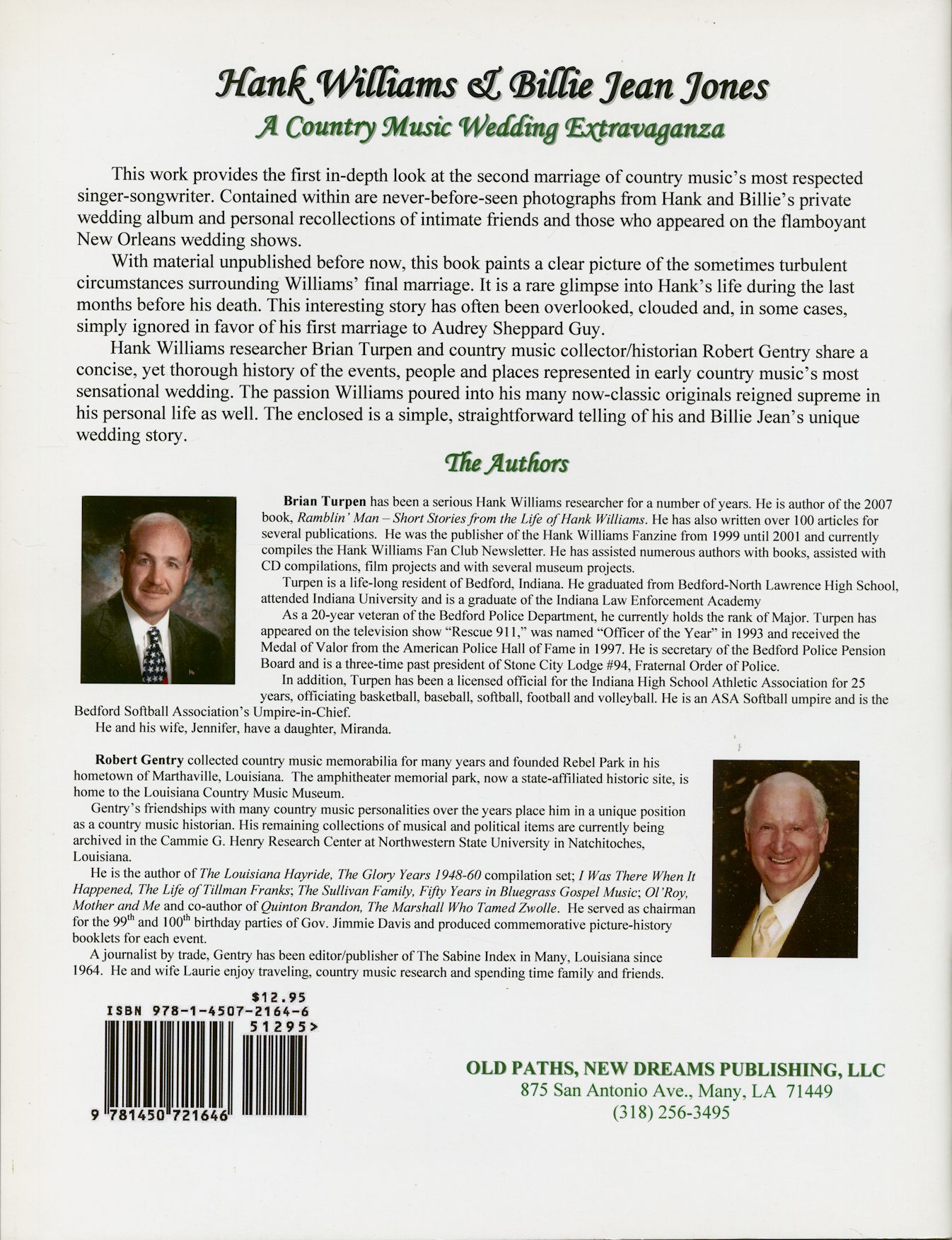 Contained within are never before seen photographs from Hank and Billie´s private wedding album and personal recollections of intimate friends and those who appeared on the flamboyant New Orleans wedding shows. With material unpublished before now, this book paints a clear picture of the sometimes turbulent circumstances surrounding Williams´ final marriage. It is a rare glimpse into Hank´s life during the last months before his death.